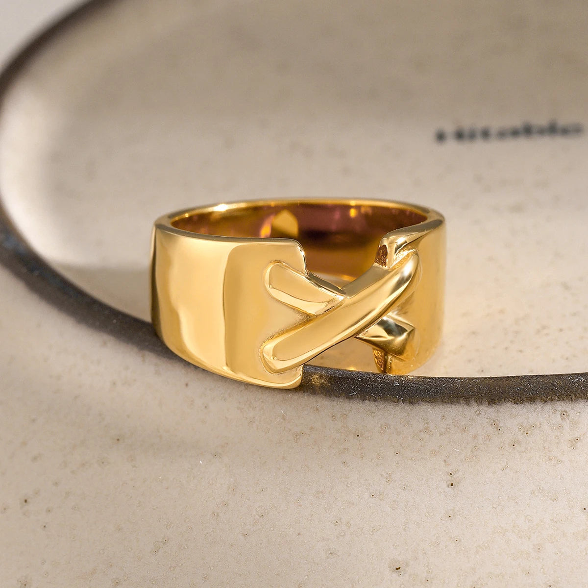 ステンレス304 低ニッケル 水に濡れても錆びにくい 18Kゴールドメッキ リング 【YJ03858】