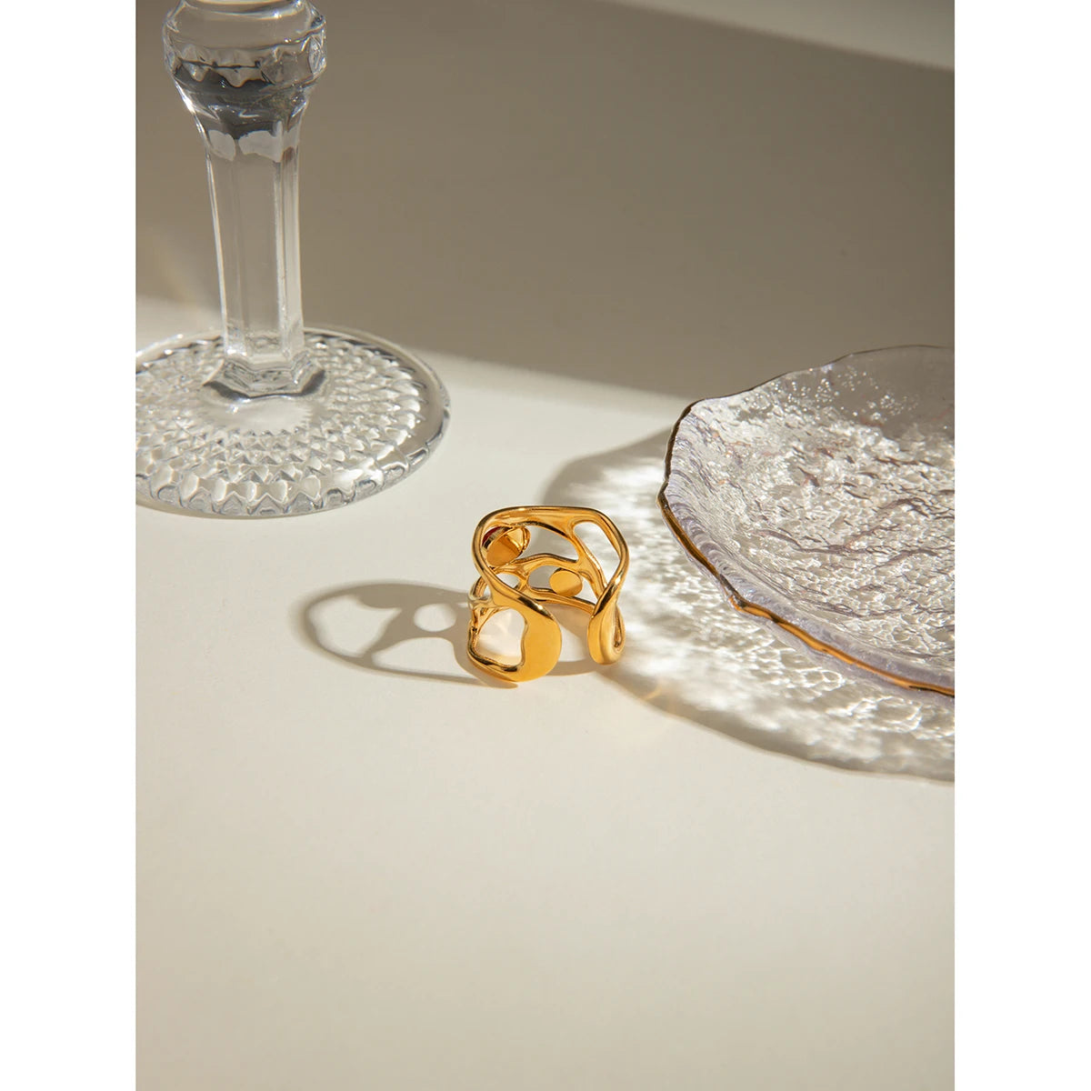 ステンレス304 低ニッケル 水に濡れても錆びにくい 18Kゴールドメッキ リング 【YJ03862】