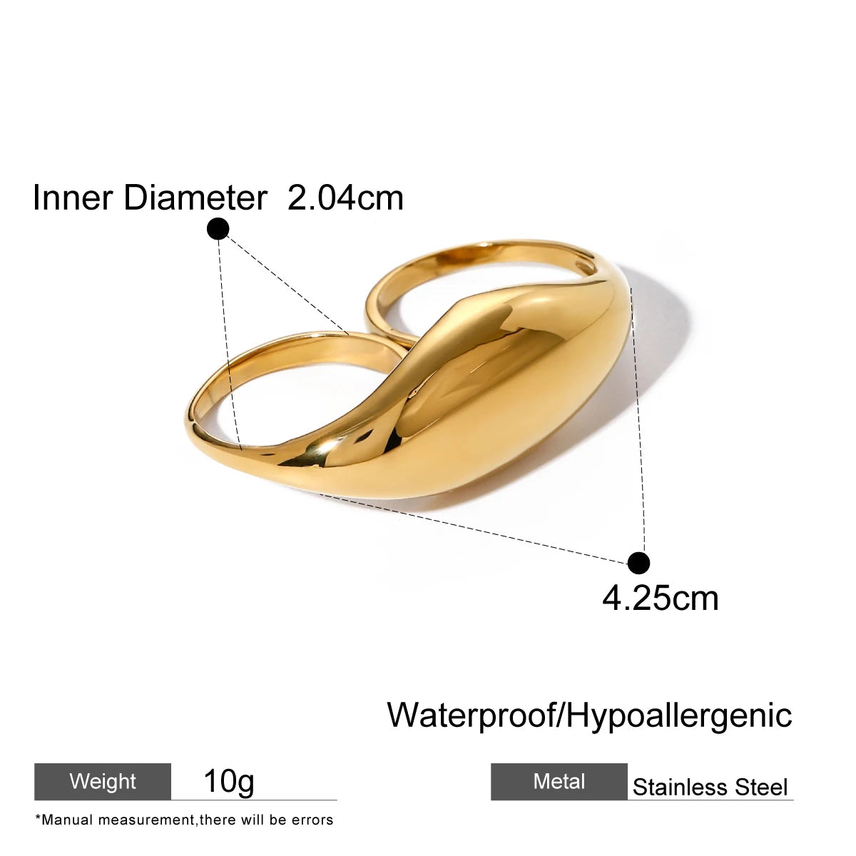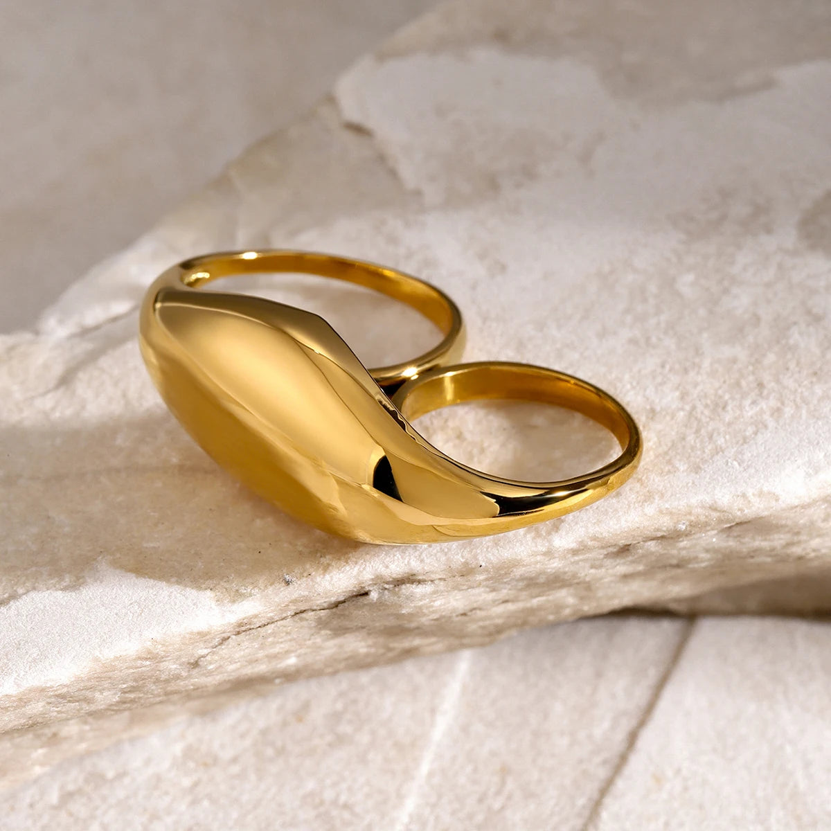ステンレス304 低ニッケル 水に濡れても錆びにくい 18Kゴールドメッキ リング 2連【YJ03865】