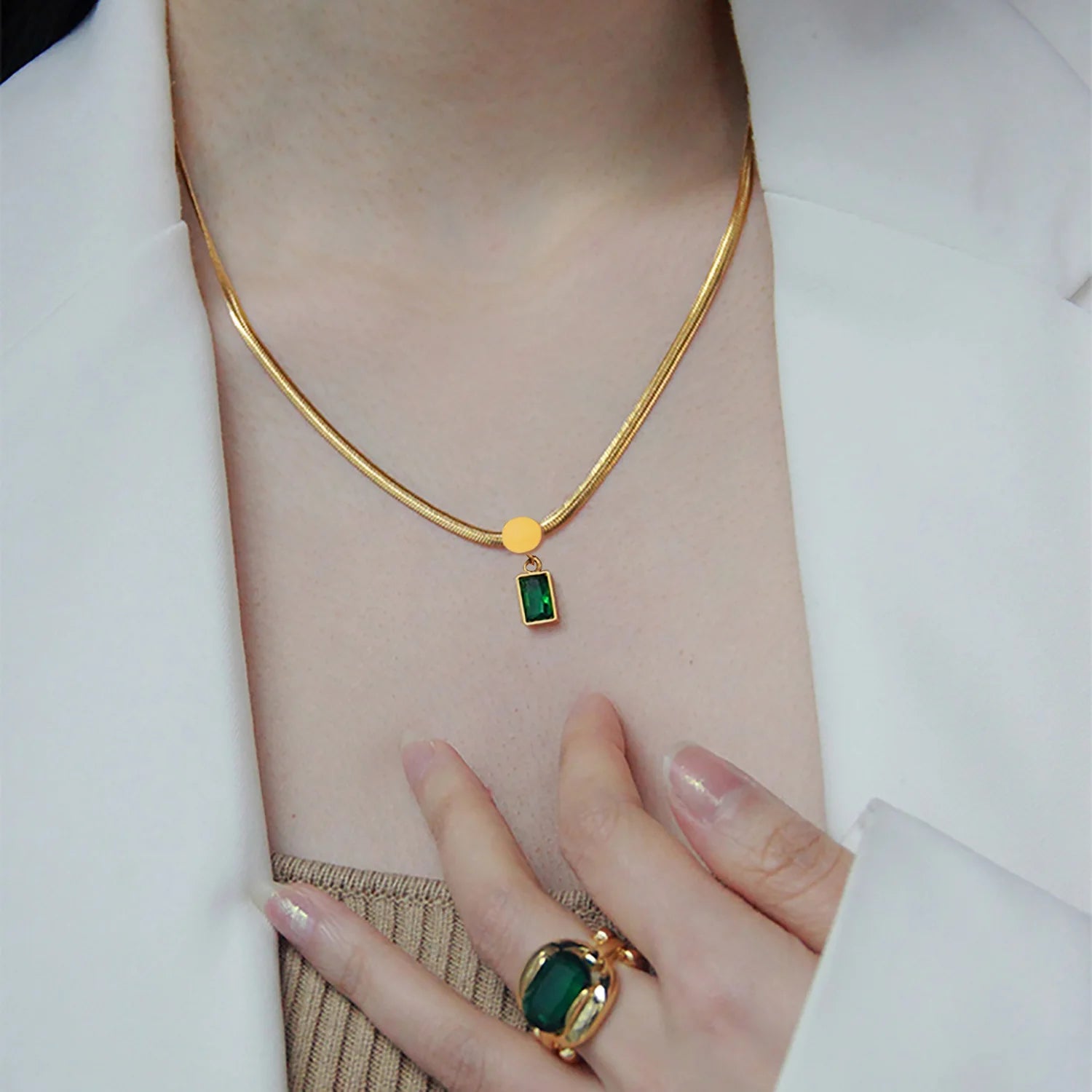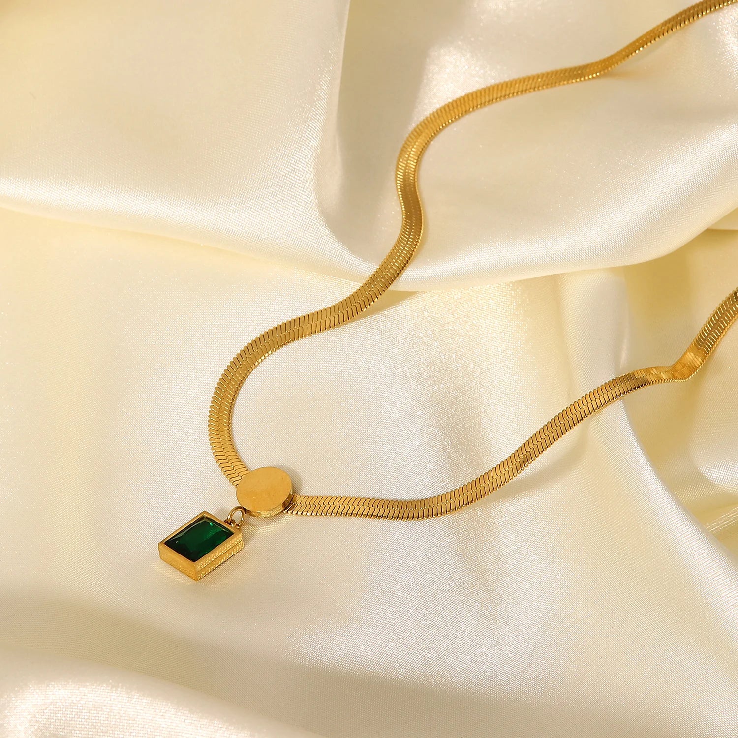 ステンレス304 低ニッケル 水に濡れても錆びにくい 18Kゴールドメッキ ネックレス スネークチェーン ジルコニア 【YJ03917】