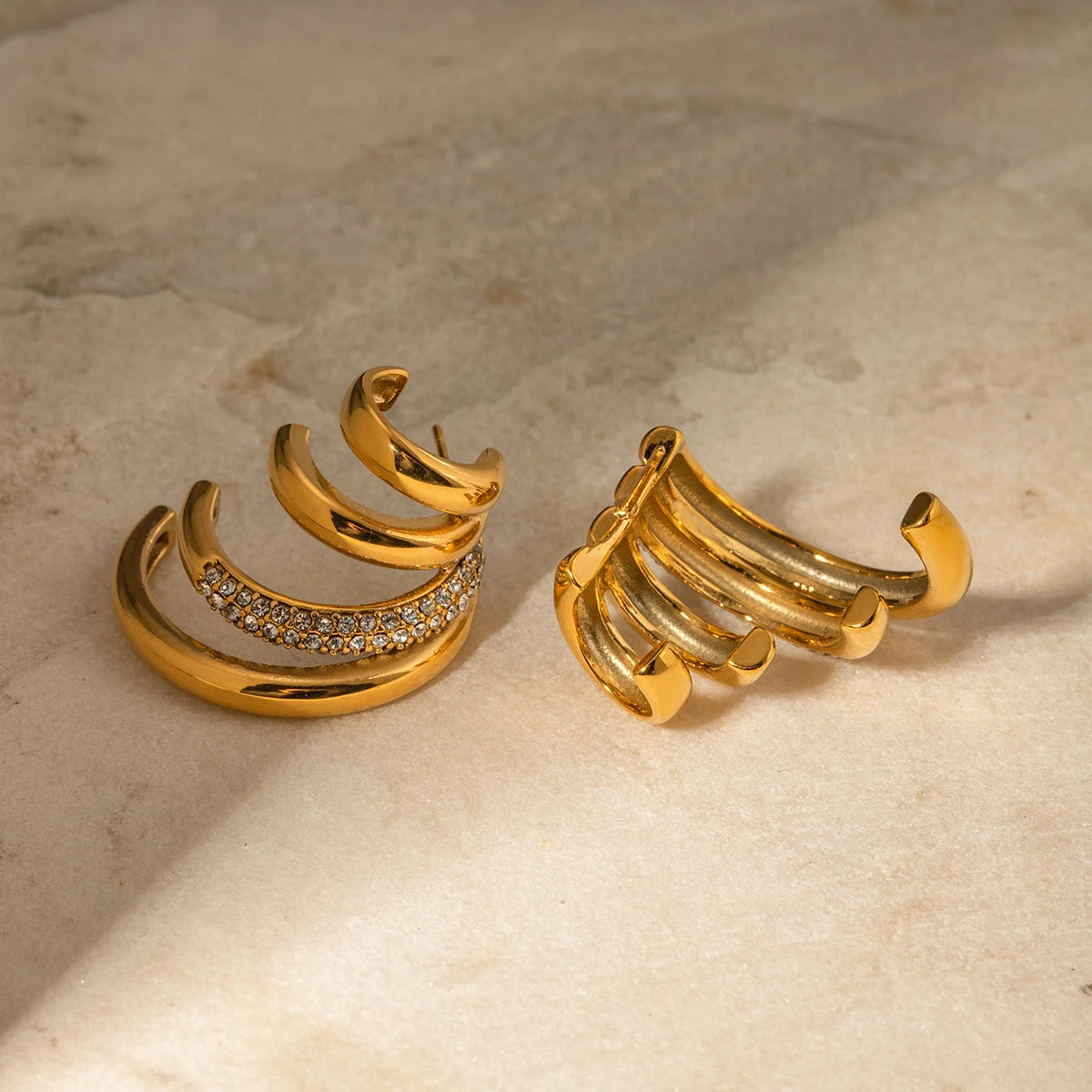 • ピアスのポスト部分は素材の特性上、キャッチがきつく感じられる場合や、スムーズに取り外せないことがありますが、これは不良品ではありませんのでご了承ください。特に新品時はゴールドメッキコーティングの厚みにより、やや固めに感じることがございます。無理に力を加えるとポストの曲がりや破損につながる可能性があるため、優しくゆっくりと着脱いただくことをおすすめします。