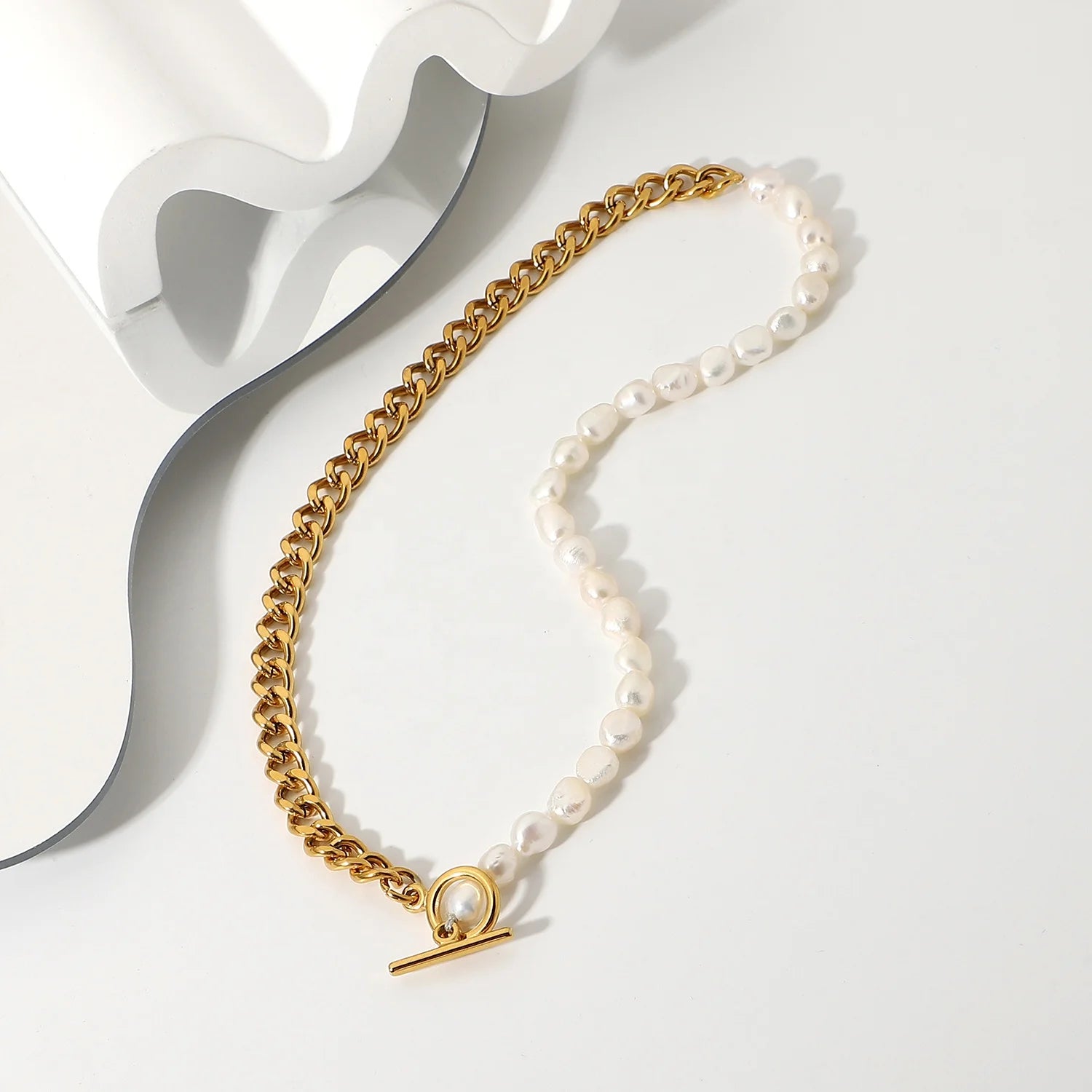 ステンレス304 低ニッケル 水に濡れても錆びにくい 18Kゴールドメッキ ネックレス チェーン パール 【YJ03952】