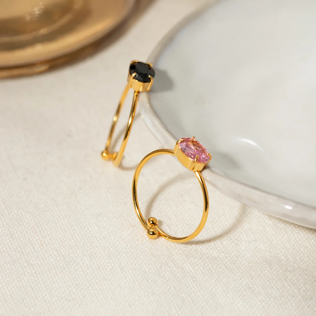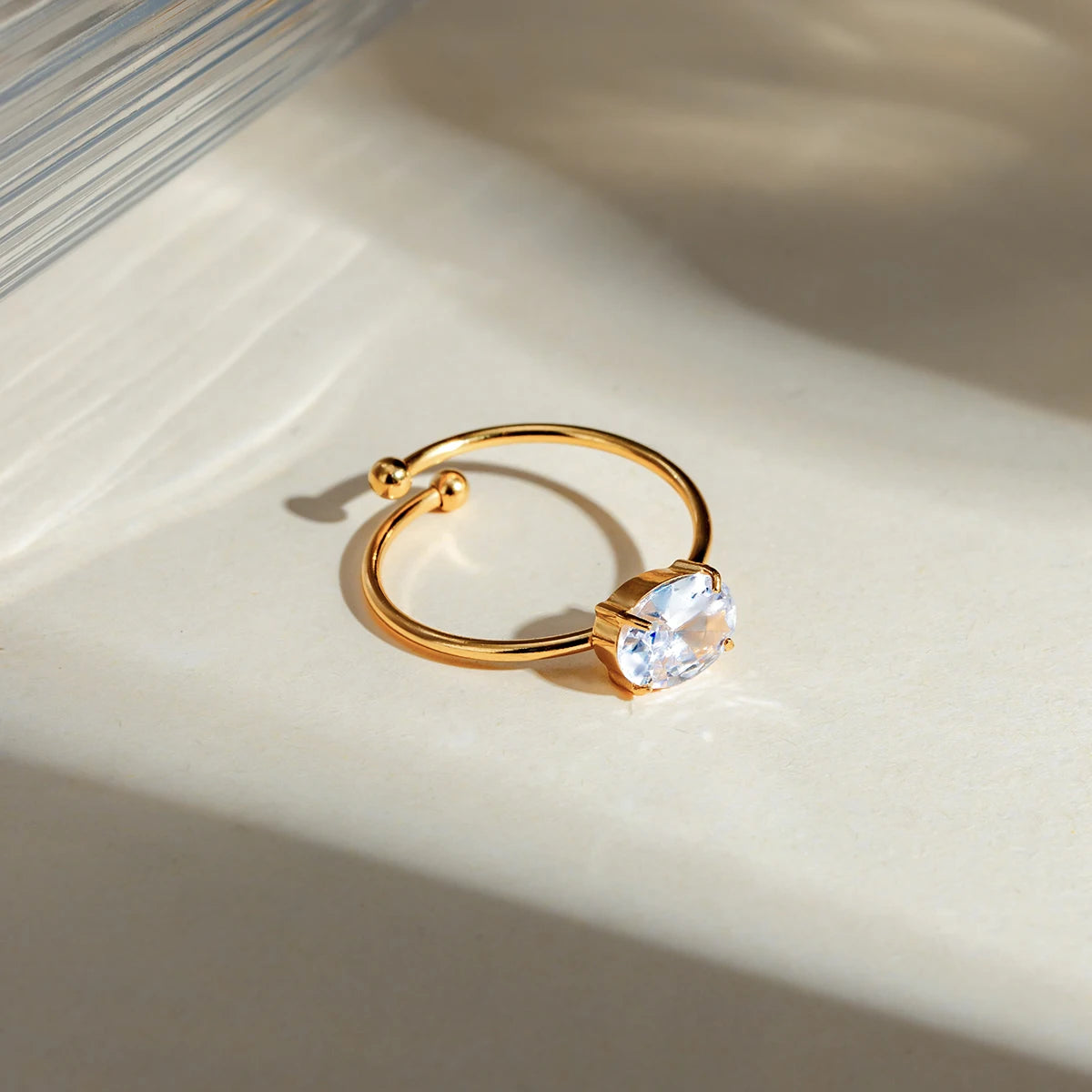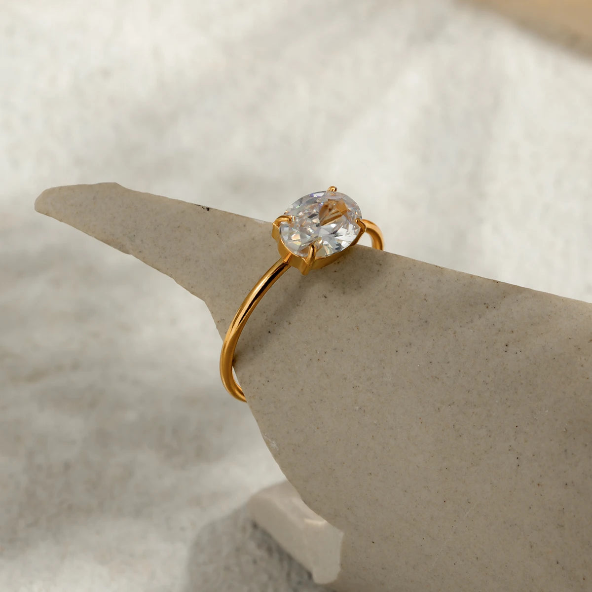 ステンレス304 低ニッケル 水に濡れても錆びにくい 18Kゴールドメッキ リング ジルコニア 【YJ03960】