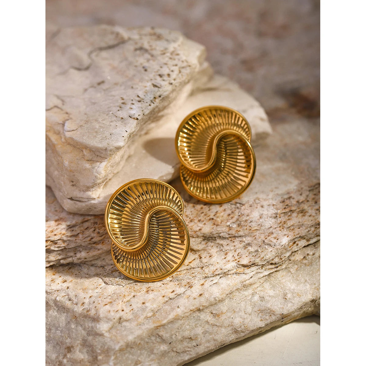 ステンレス304 低ニッケル 水に濡れても錆びにくい 18Kゴールドメッキ ピアス チャンキー【YJ03966】