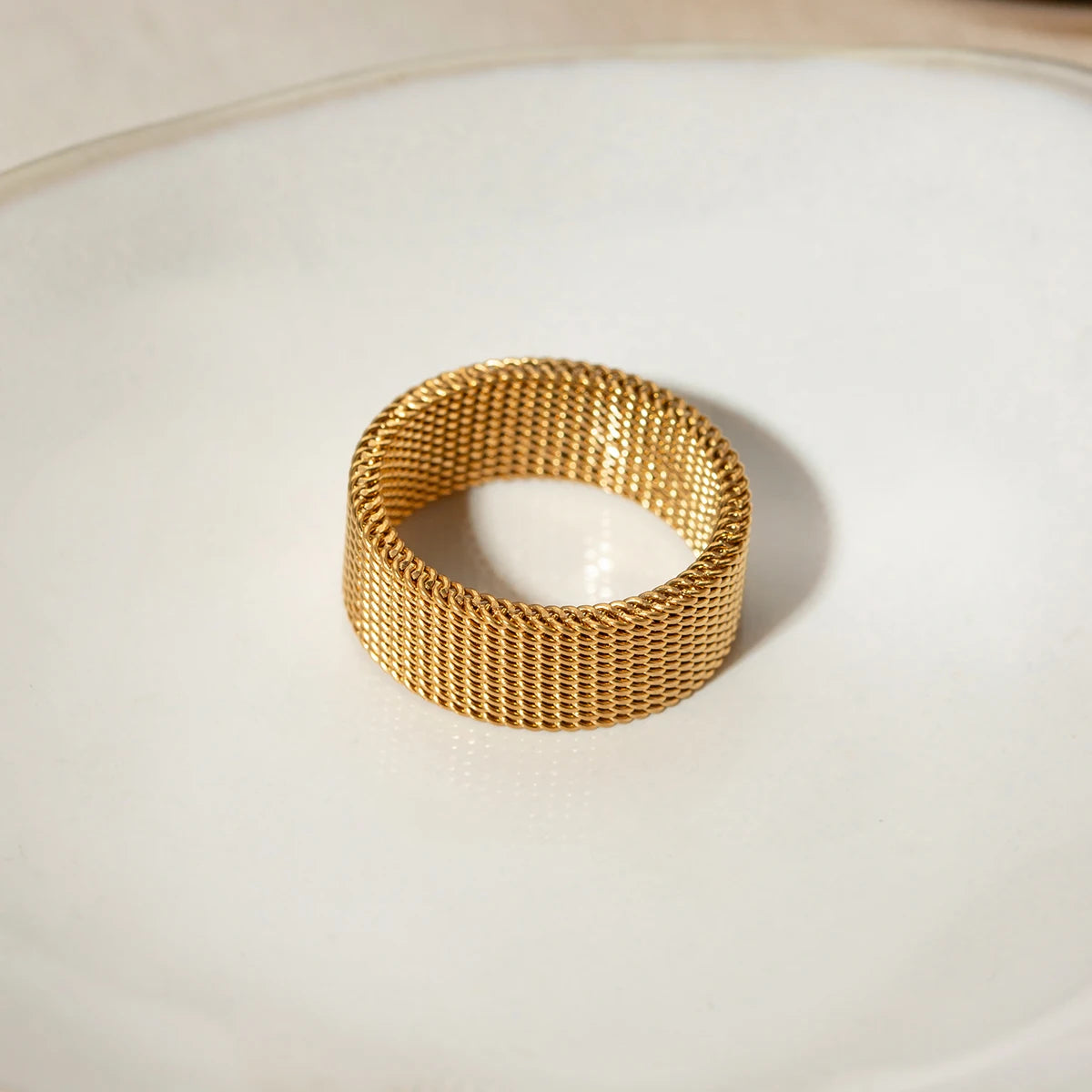 ステンレス304 低ニッケル 水に濡れても錆びにくい 18Kゴールドメッキ リング【YJ03968】