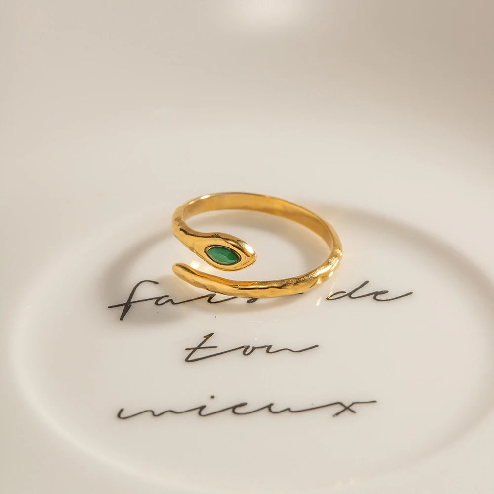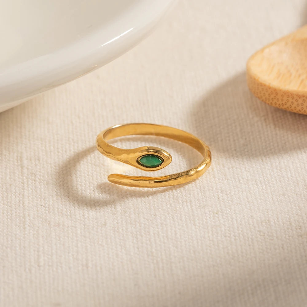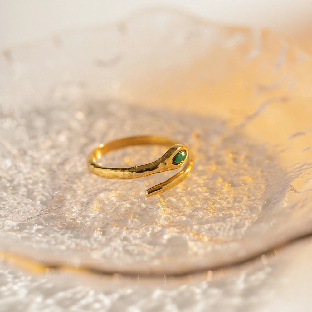 ステンレス304 低ニッケル 水に濡れても錆びにくい 18Kゴールドメッキ リング 蛇 ヘビ スネーク 【YJ03978】