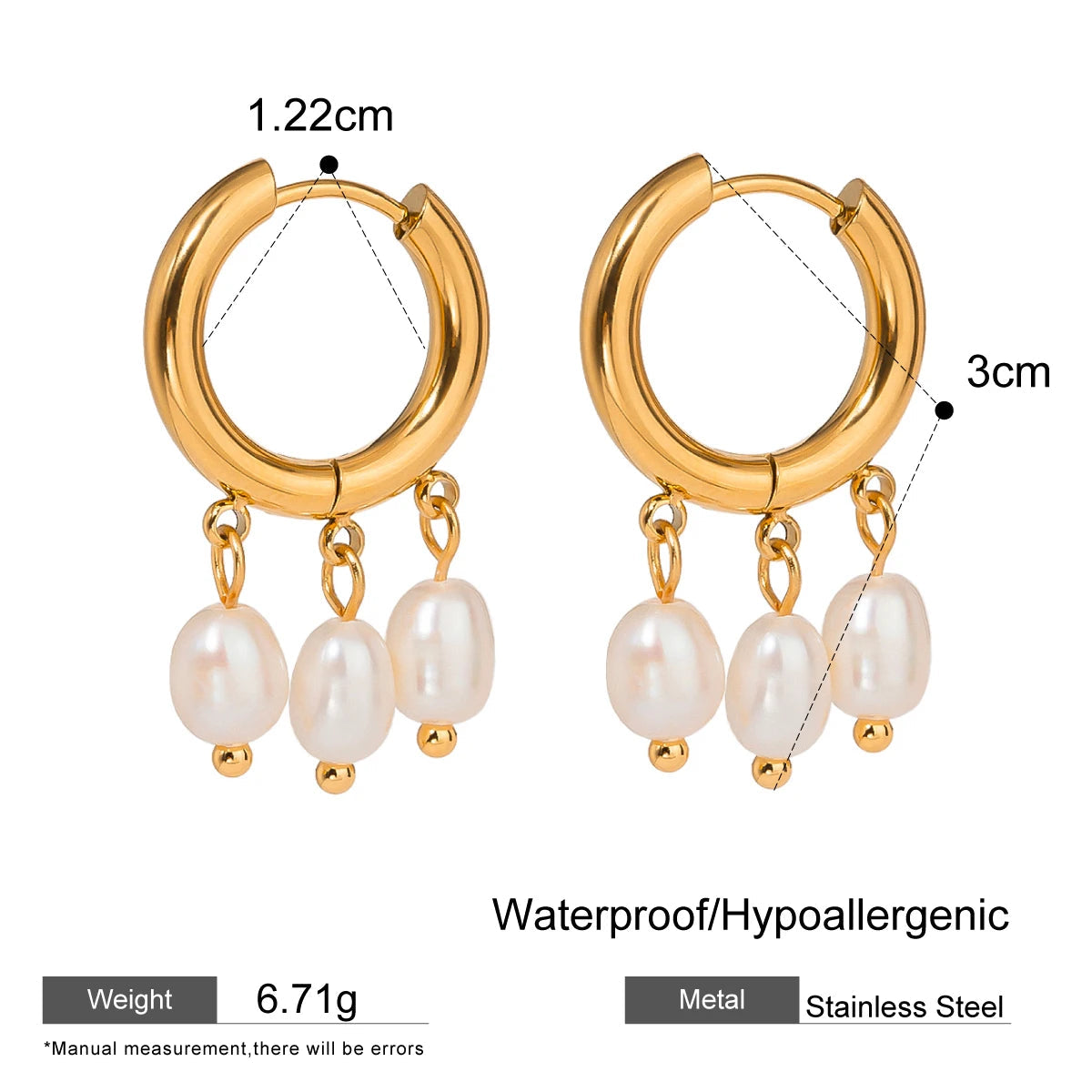 ステンレス304 低ニッケル 水に濡れても錆びにくい 18Kゴールドメッキ ピアス フープ パール 【YJ03983】