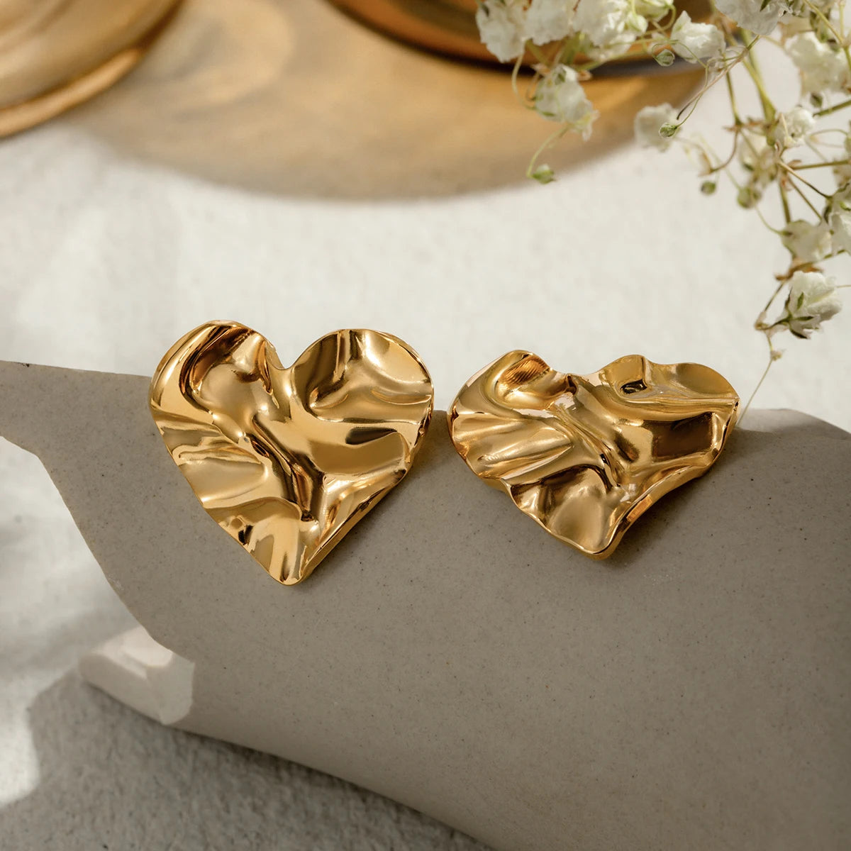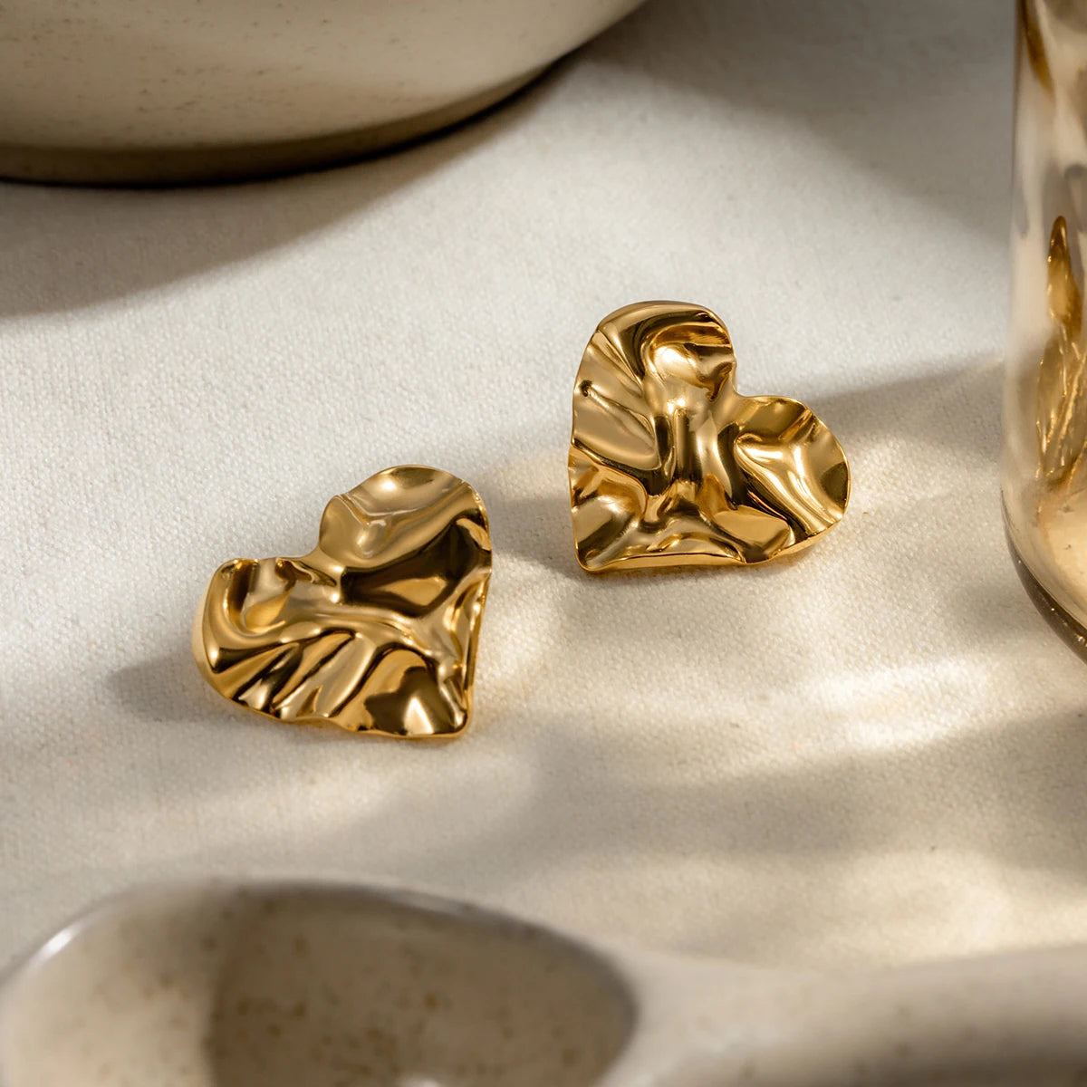 ステンレス304 低ニッケル 水に濡れても錆びにくい 18Kゴールドメッキ ピアス ハート 【YJ04007】