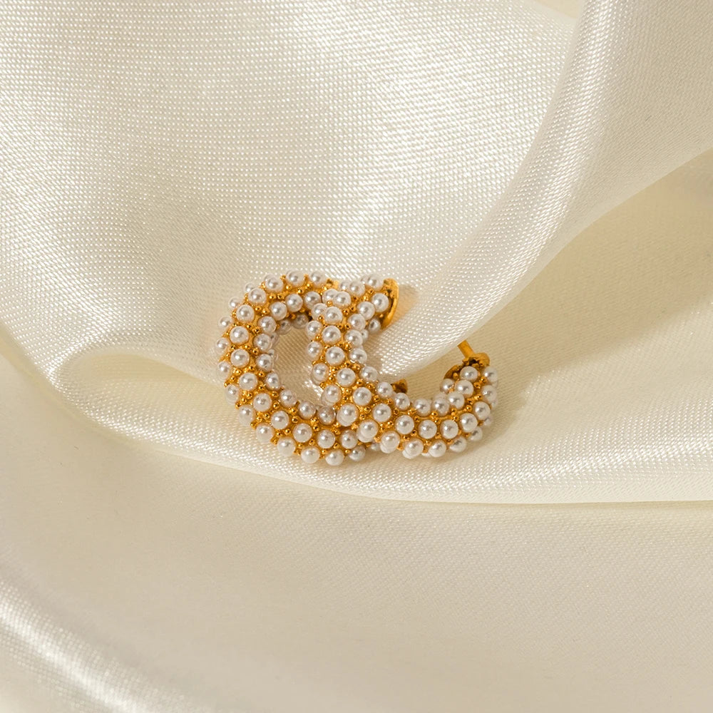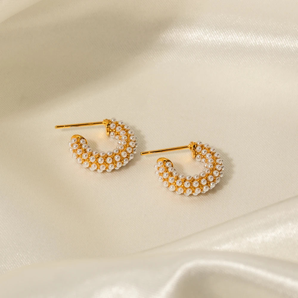 ステンレス304 低ニッケル 水に濡れても錆びにくい 18Kゴールドメッキ ピアス チャンキー フープ パール 【YJ04023】