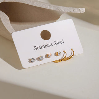 ステンレス304 低ニッケル 水に濡れても錆びにくい 18Kゴールドメッキ ピアス フープ ジルコニア 3点セット【YJ02916】