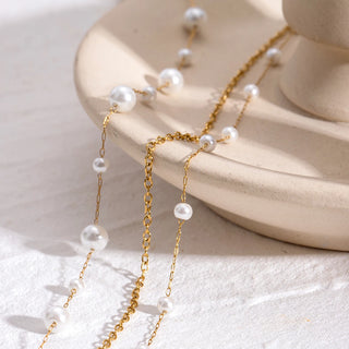 ステンレス304 低ニッケル 水に濡れても錆びにくい 18Kゴールドメッキ ネックレス 3連 パール 【YJ02946】