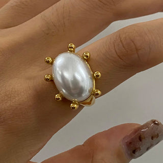 ステンレス304 低ニッケル 水に濡れても錆びにくい 18Kゴールドメッキ リング パール 【YJ02929】