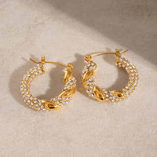 ステンレス304 低ニッケル 水に濡れても錆びにくい 18Kゴールドメッキ ピアス フープ ジルコニア ツイスト 【YJ02954】