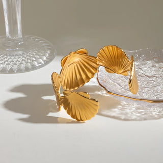 ステンレス304 低ニッケル 水に濡れても錆びにくい 18Kゴールドメッキ ブレスレット チャンキー シェル 貝殻 【YJ03336】