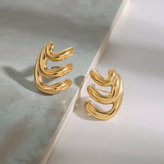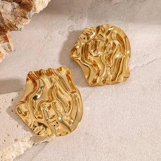 ステンレス304 低ニッケル 水に濡れても錆びにくい 18Kゴールドメッキ ピアス チャンキー ティアドロップ 【YJ03337】