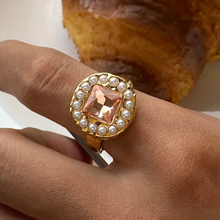 ステンレス304 低ニッケル 水に濡れても錆びにくい 18Kゴールドメッキ リング パール ジルコニア 【YJ03320】