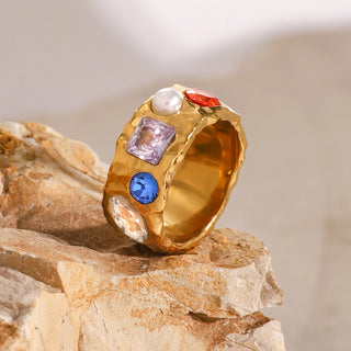 ステンレス304 低ニッケル 水に濡れても錆びにくい 18Kゴールドメッキ リング ジルコニア【YJ03347】