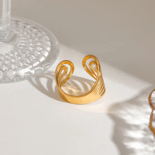 ステンレス304 低ニッケル 水に濡れても錆びにくい 18Kゴールドメッキ リング チャンキー 【YJ03341】