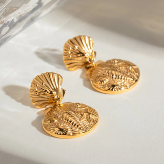 ステンレス304 低ニッケル 水に濡れても錆びにくい 18Kゴールドメッキ ピアス シェル 貝殻 【YJ03328】