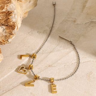 ステンレス304 低ニッケル 水に濡れても錆びにくい 18Kゴールドメッキ ブレスレット LOVE ジルコニア【YJ03366】
