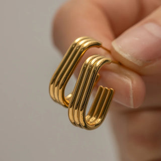 ステンレス304 低ニッケル 水に濡れても錆びにくい 18Kゴールドメッキ ピアス チャンキー 【YJ03246】