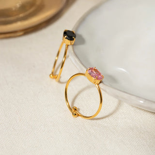 ステンレス304 低ニッケル 水に濡れても錆びにくい 18Kゴールドメッキ リング ジルコニア 【YJ03939】