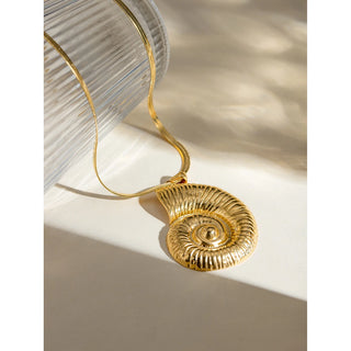 ステンレス304 低ニッケル 水に濡れても錆びにくい 18Kゴールドメッキ ネックレス スネークチェーン 貝殻 【YJ03932】