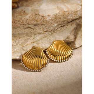 ステンレス304 低ニッケル 水に濡れても錆びにくい 18Kゴールドメッキ ピアス シェル 貝殻 ジルコニア【YJ03955】