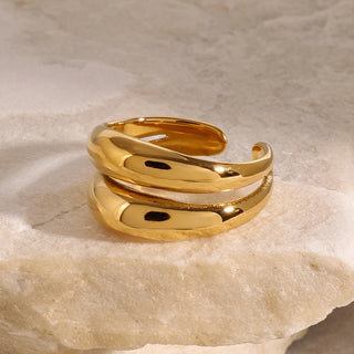 ステンレス304 低ニッケル 水に濡れても錆びにくい 18Kゴールドメッキ リング【YJ03242】