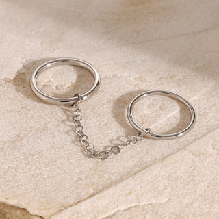 ステンレス304 低ニッケル 水に濡れても錆びにくい 18Kゴールドメッキ リング 2連 チェーン 【YJ03247】