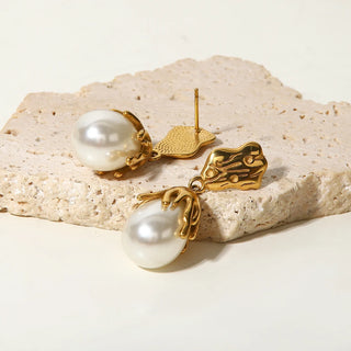 ステンレス304 低ニッケル 水に濡れても錆びにくい 18Kゴールドメッキ ピアス チャンキー フープ パール【YJ03224】