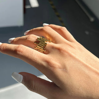ステンレス304 低ニッケル 水に濡れても錆びにくい 18Kゴールドメッキ リング チャンキー 【YJ03212】