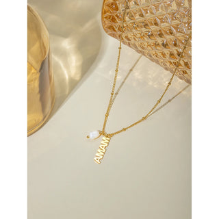 ステンレス304 低ニッケル 水に濡れても錆びにくい 18Kゴールドメッキ ネックレス パール MAMA【YJ03867】