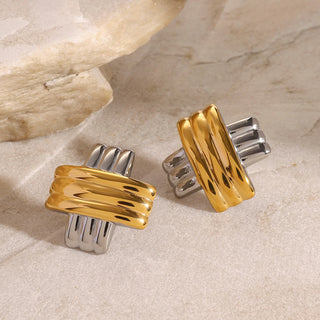 ステンレス304 低ニッケル 水に濡れても錆びにくい 18Kゴールドメッキ ピアス チャンキー スクエア 【YJ03147】