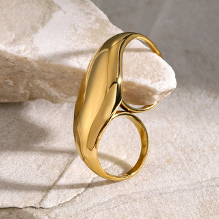 ステンレス304 低ニッケル 水に濡れても錆びにくい 18Kゴールドメッキ リング チャンキー ウェーブ 【YJ03850】