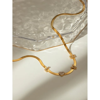 ステンレス304 低ニッケル 水に濡れても錆びにくい 18Kゴールドメッキ ネックレス スネークチェーン LOVE ジルコニア 【YJ03847】