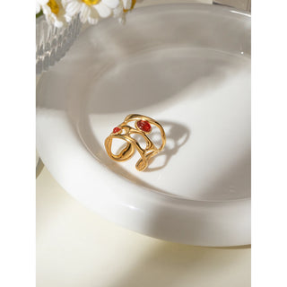 ステンレス304 低ニッケル 水に濡れても錆びにくい 18Kゴールドメッキ リング ウェーブ【YJ03134】