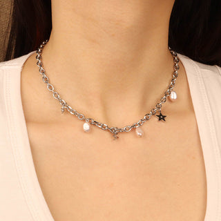 316Lサージカルステンレス ネックレス スター 星 パール【NY01082】