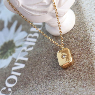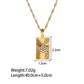 ステンレス304 低ニッケル 水に濡れても錆びにくい 18Kゴールドメッキ ネックレス スクエア スター 星ジルコニア 【YJ02369】