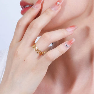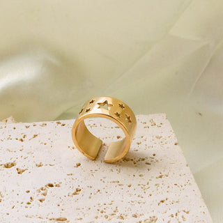 ステンレス304 低ニッケル 水に濡れても錆びにくい 18Kゴールドメッキ リング スター 星 【YJ02151】
