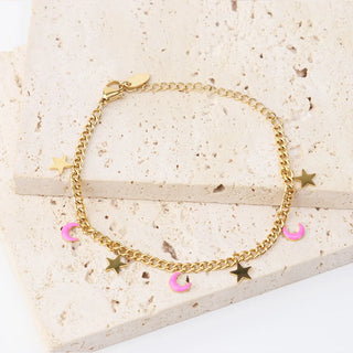 ステンレス304 低ニッケル 水に濡れても錆びにくい 18Kゴールドメッキ ブレスレット 月 太陽 星 スター 【YJ02592】
