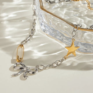 ステンレス304 低ニッケル 水に濡れても錆びにくい 18Kゴールドメッキ ネックレス チェーン スター 星 リボン 【YJ03362】