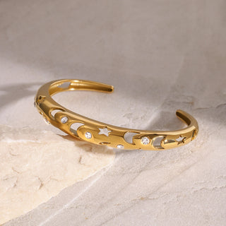 ステンレス304 低ニッケル 水に濡れても錆びにくい 18Kゴールドメッキ ブレスレット スター 星 月 バングル【YJ02953】
