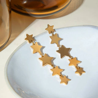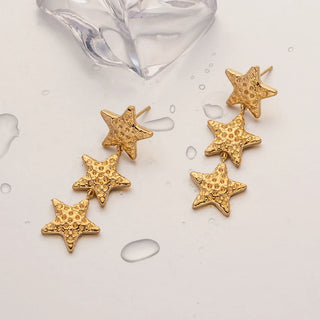 ステンレス304 低ニッケル 水に濡れても錆びにくい 18Kゴールドメッキ ピアス チャンキー スター 星 【YJ03746】