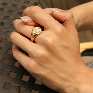 316Lサージカルステンレス リング シグネット スター 星 ジルコニア【NY01465】