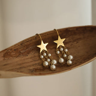 316Lサージカルステンレス ピアス タッセル パール 星 スター【NY00969】