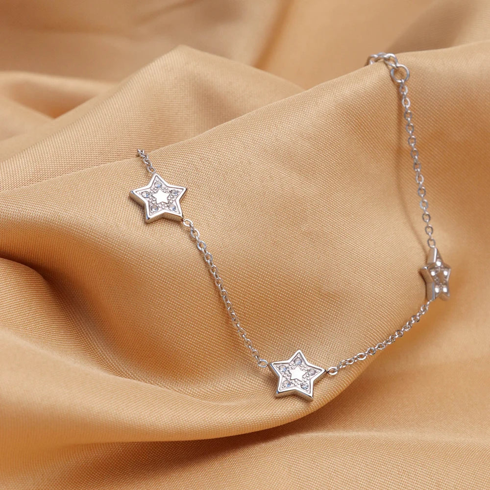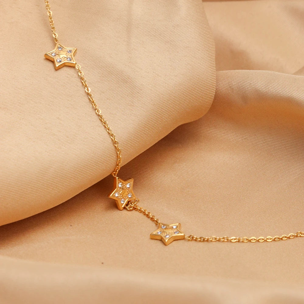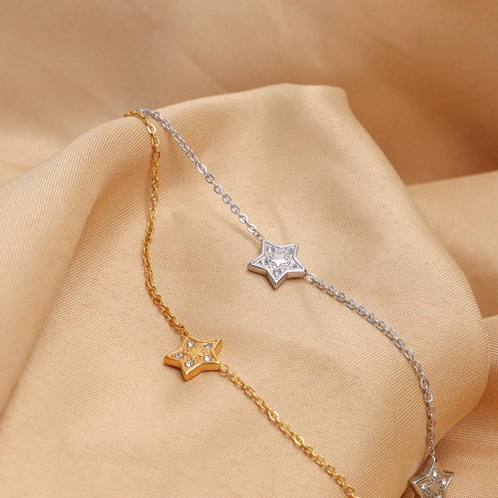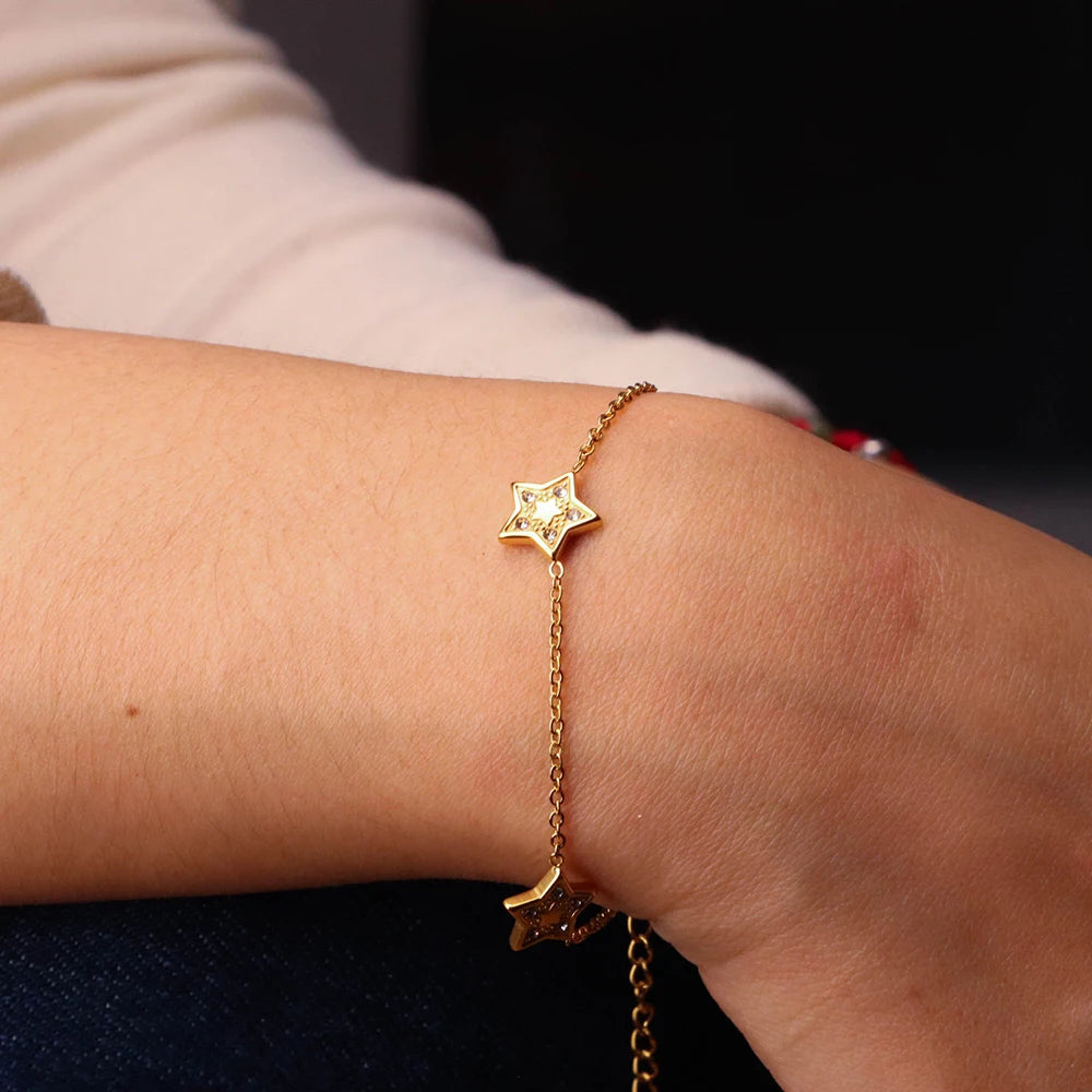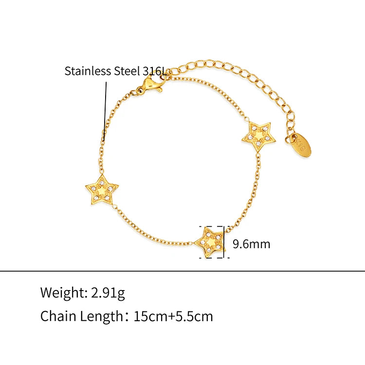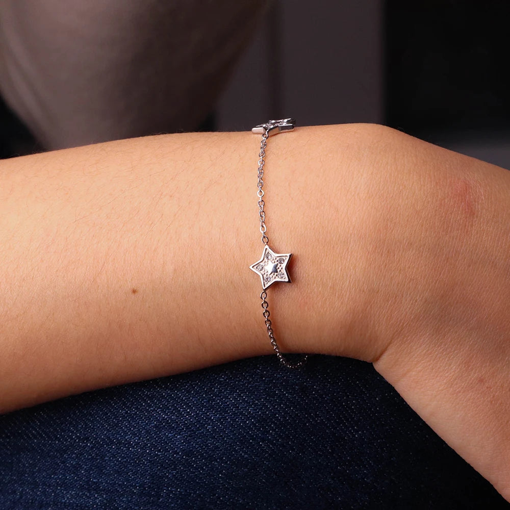316Lサージカルステンレス ブレスレット チャーム スター 星 ジルコニア【NY00723】