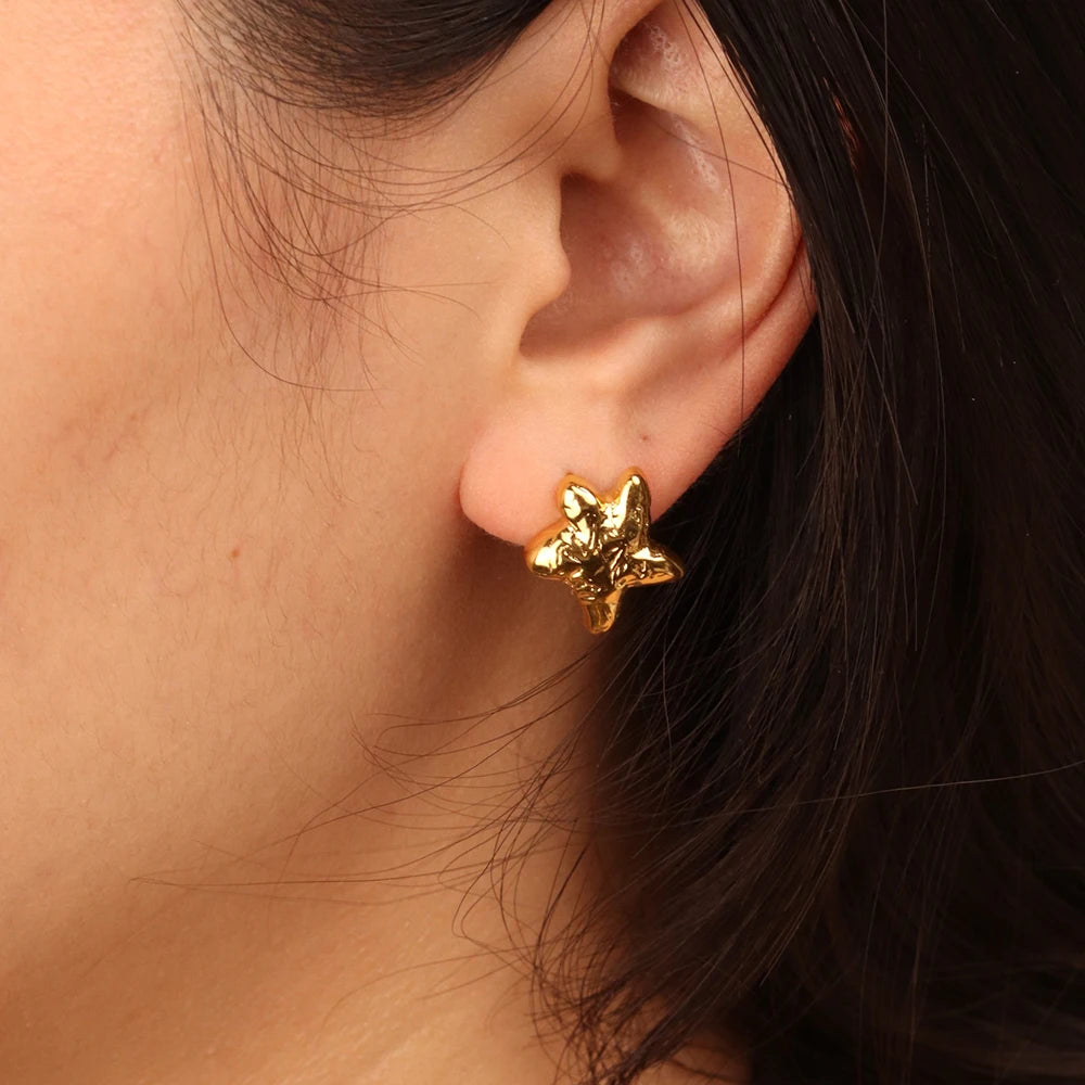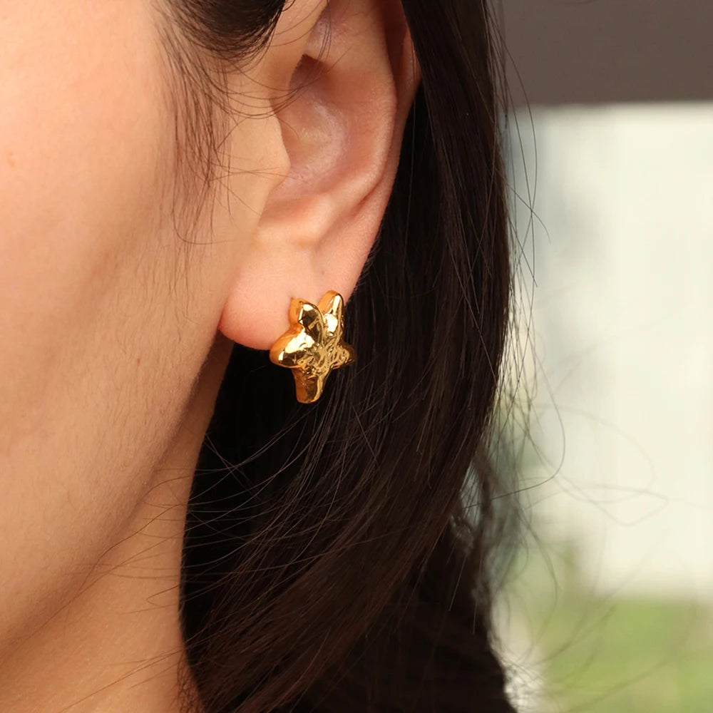 - ピアスのポスト部分は素材の特性上、キャッチがきつく感じられる場合や、スムーズに取り外せないことがありますが、これは不良品ではありませんのでご了承ください。特に新品時はゴールドメッキコーティングの厚みにより、やや固めに感じることがございます。無理に力を加えるとポストの曲がりや破損につながる可能性があるため、優しくゆっくりと着脱いただくことをおすすめします。