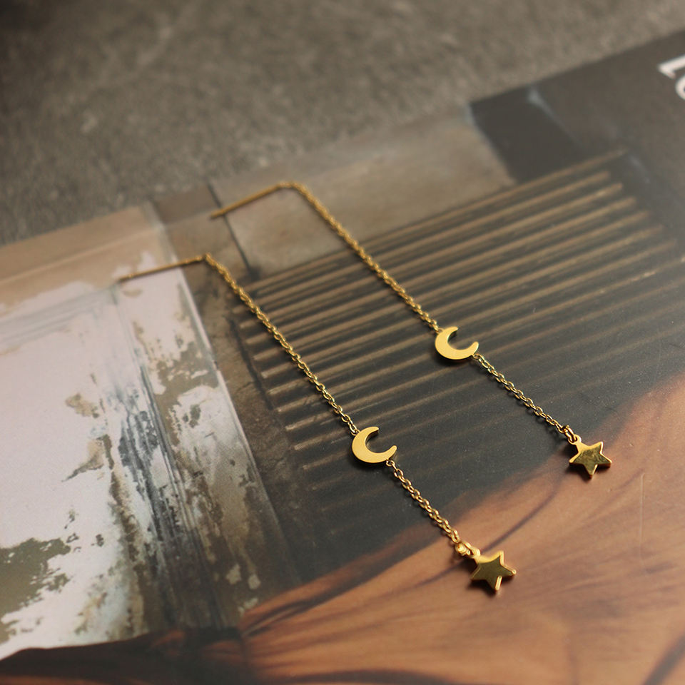 316Lサージカルステンレス ピアス チェーン スター 星 月 【NY00921】