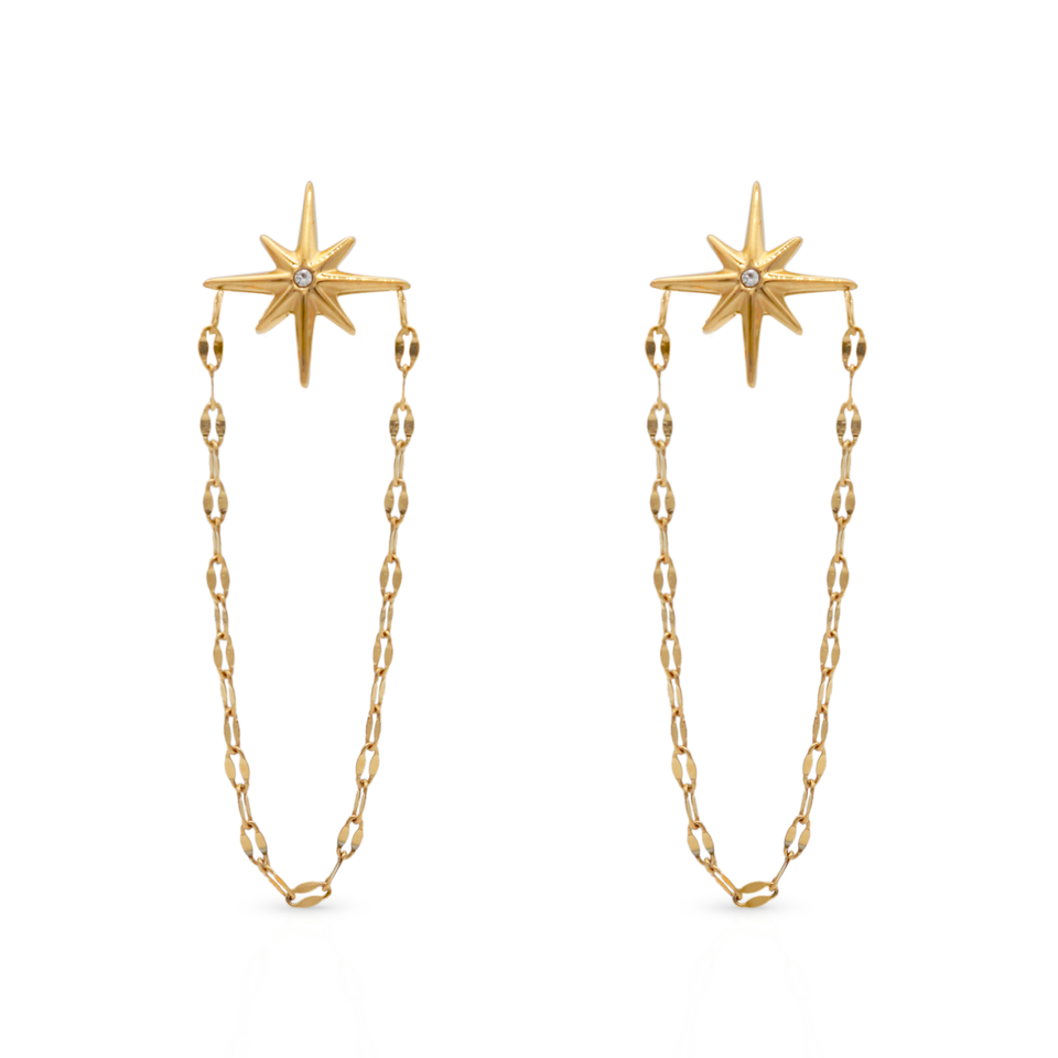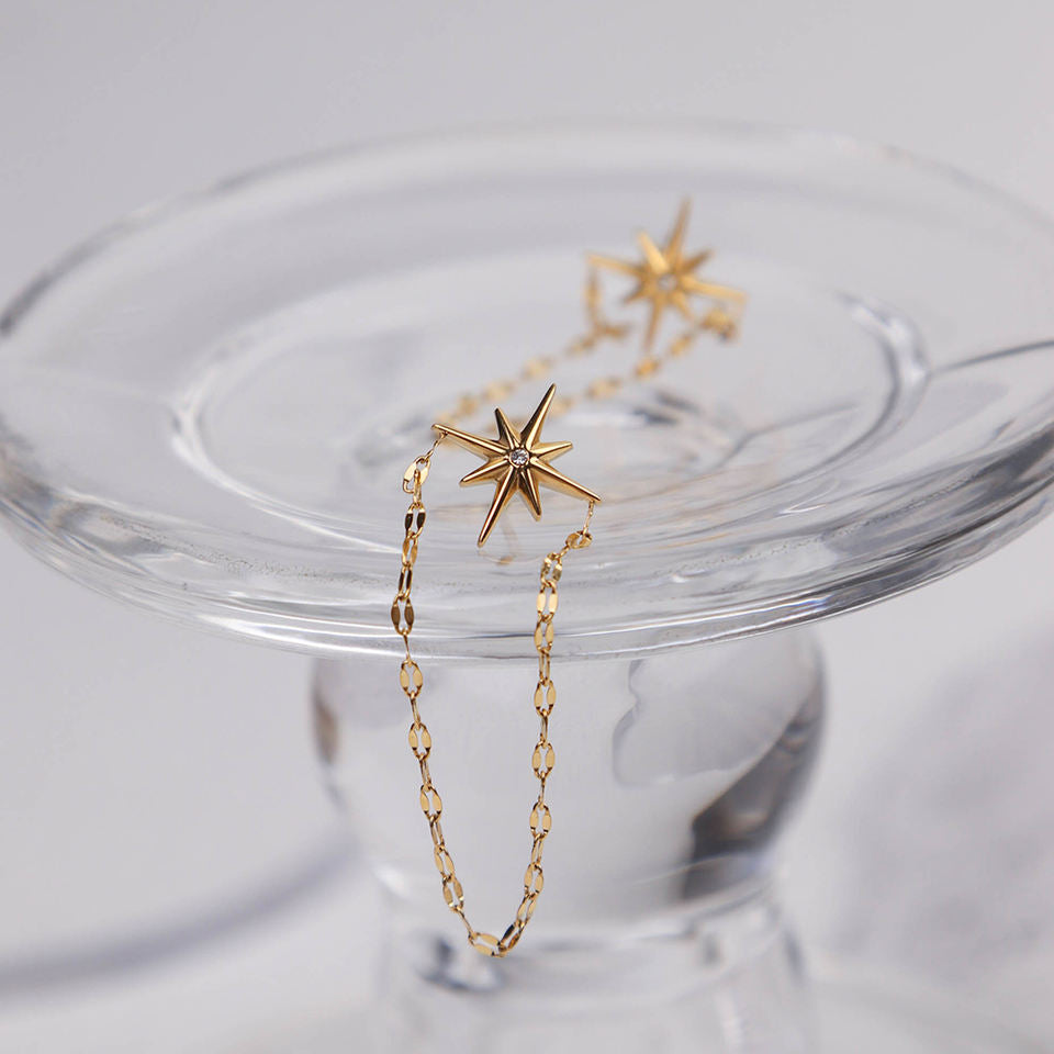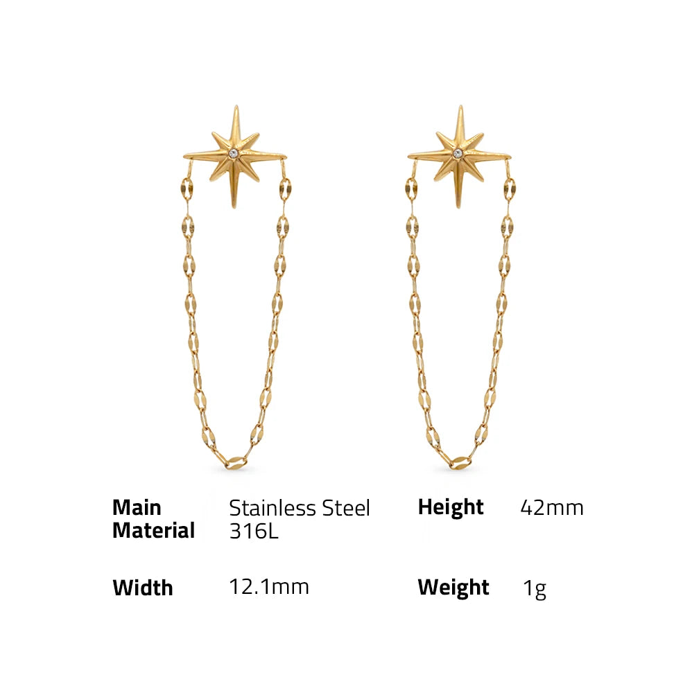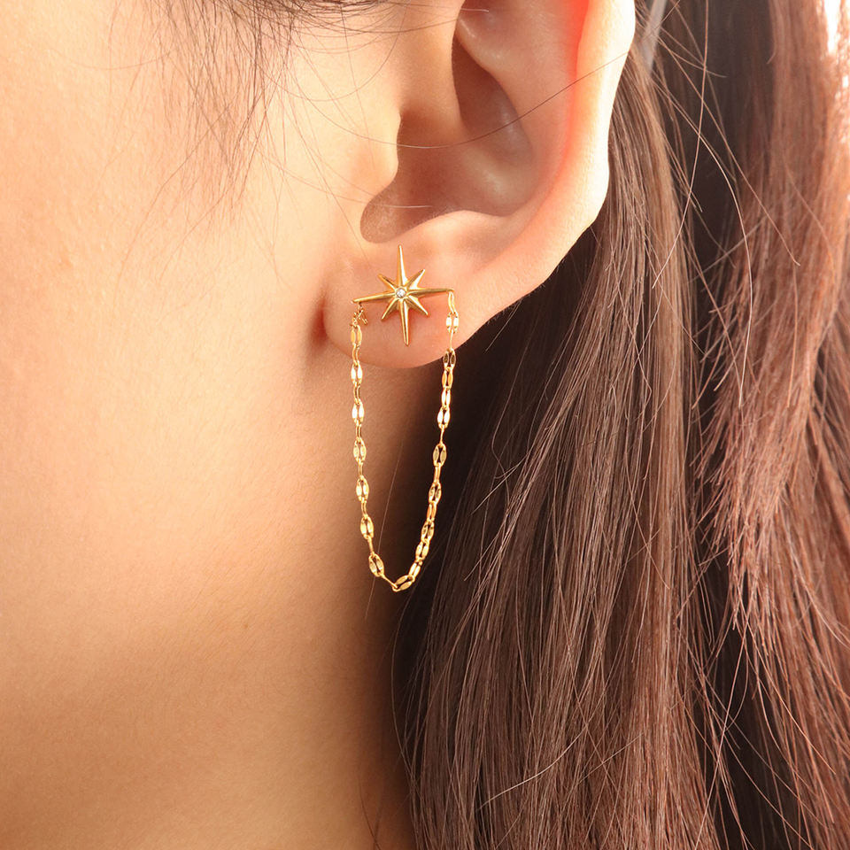 316Lサージカルステンレス ピアス チェーン スター 星 ジルコニア【NY01039】